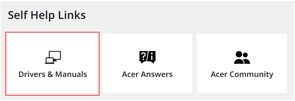 - The Support page will appear on your screen. Scroll down to the Self Help Links and click Drivers & Manuals.