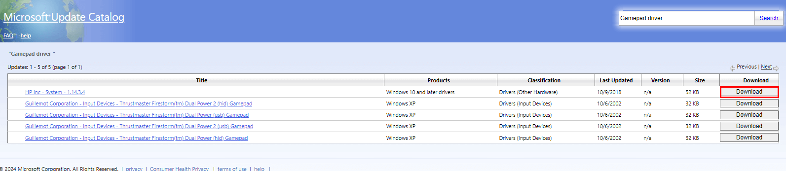 Microsoft Update Catalog is a website created by Microsoft, that provides a list of driver updates, patches, and software updates. So, you can simply go to the Microsoft Catalog’s official website and search for the driver you are looking for. Then, download the driver installer. Here is how to perform gamepad driver download and update via Microsoft Update Catalog.